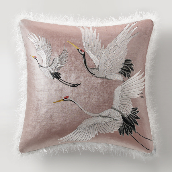 Crane Embroidered Pillow 20"