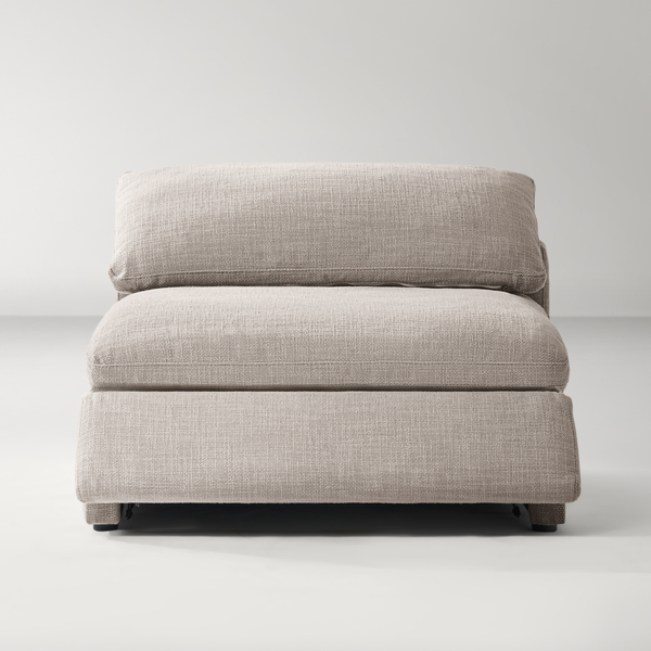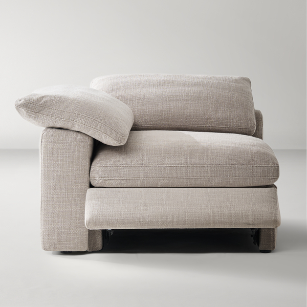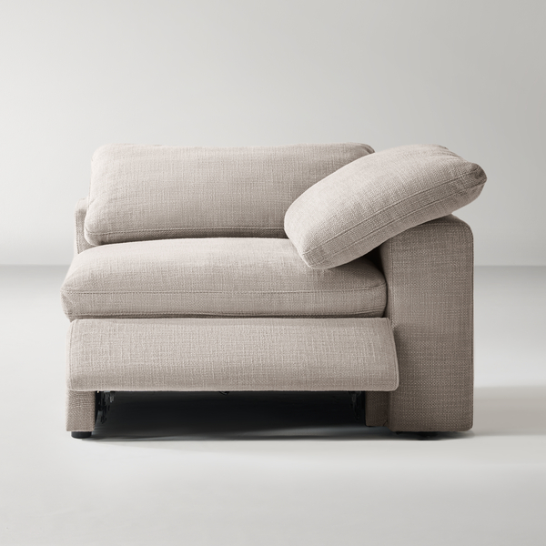 Unwind in style with the Milo Reclining Cloud Sectional, where luxurious comfort meets unmatched versatility. This modular design allows you to craft the perfect seating arrangement with configurations ranging from three to eight pieces. Generously proportioned and upholstered in soft, textured woven fabric available in beige or dove grey, each piece invites relaxation. Plush feather cushioning over a high-density foam base and motion recliners elevate your lounging experience, offering tailored comfort for any occasion. Redefine your living space with the Milo, the pinnacle of modern comfort and design.ZG ExclusiveDETAILSCloud-like comfort seat/back cushions with blend of feathers, down and fiberPower reclining footrest controlled separately for extra supportExtra wide & deep seatsHigh density foam with feather layer cushionColour: BeigeHand crafted detailsFrame Material: PlywoodFabric Content: Texture Weave 100%PolyesterFabric Function: C0 performanced fabircSeat cushion:80% Foam, 20% featherBack cushion:50% polyester, 50% featherSold separatelyImportedDIMENSIONSOverall DimensionsLeft/Right Arm Facing Chair - Power: 45.75''W × 45.75''D × 24''HArmless Chair - Power/No Power: 44''W × 45.75''D × 24''HCorner Chair - No Power: 45.75"W × 45.75"D × 24"H Inside SeatLeft/Right Arm Facing Chair - Power: 29"W × 27"D × 19.5"HArmless Chair - Power/No Power: 44"W × 27"D × 19.5"HCorner Chair - No Power: 29"W × 27"D × 19.5"H Back Height to SeatWith Cushion: 12.5"H Single Armrest WidthWidth: 10" W Armrest HeightHeight: 24" H Leg HeightHeight: 1" HOTHER INFOFor indoor use onlyBlot spills immediately with a clean, colorfast towel. Spot clean with a damp cloth or sponge, gently blotting to remove excess water, then air dry.For stains that can't be removed as such, professional cleaning is advised.Keep dryTo prevent fading, keep fabric out of direct sunlight.Arrived fully assembled.Delivered via White Glove Service, this piece will be brought to your home, fully assembled and all packaging will be removedOver sized seats features feather/polyester 50% blendedRemovable seat/back cushion