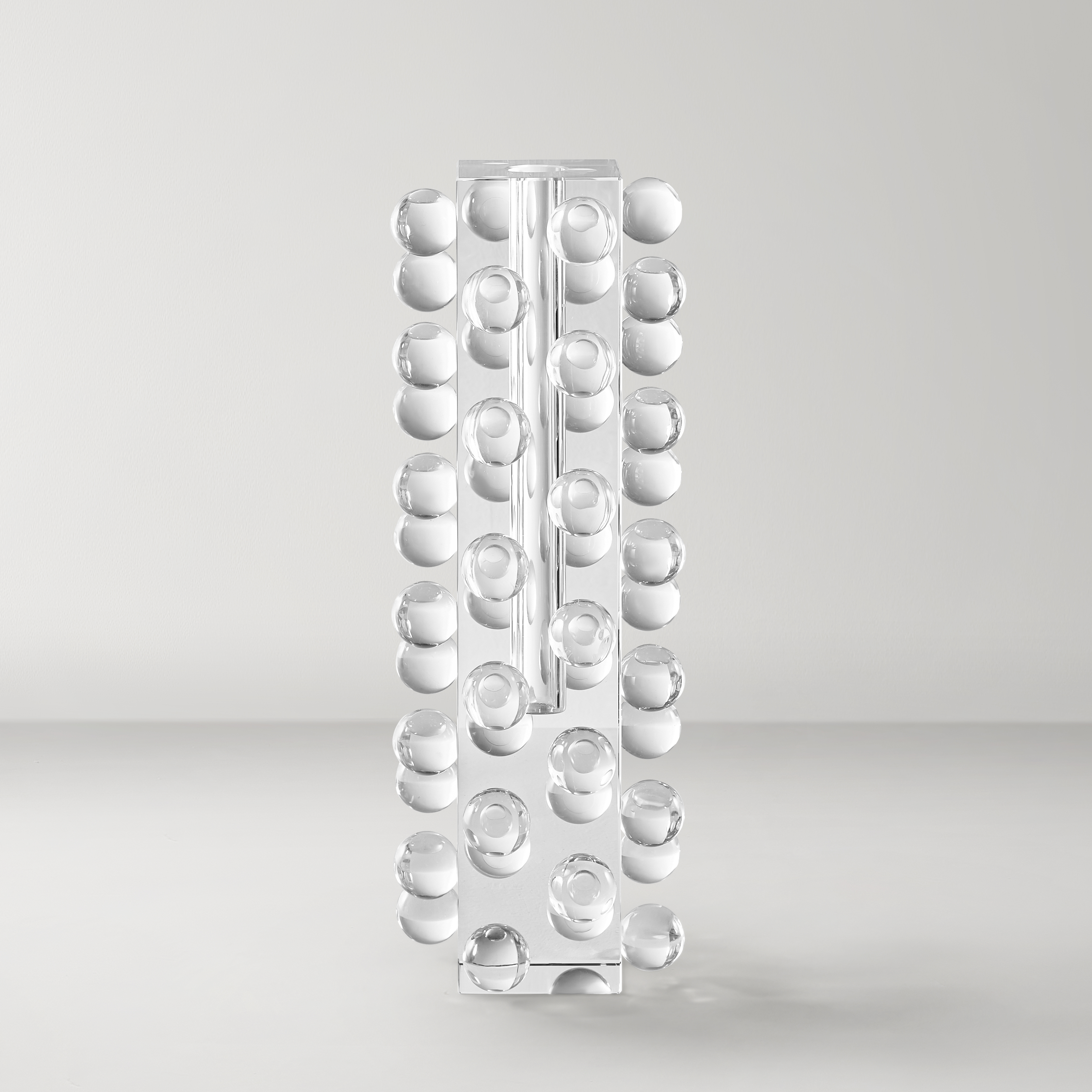 Introduce modern artistry to your space with the Bubble Vase in clear glass. The cluster of transparent spheres adds dimension and texture, making this sculptural vase a chic accent for shelves, tables, or countertops.DETAILS AND DIMENSIONSCrystal GlassClearSmall: 3.5"W x 3.5"D x 7.9"HLarge: 4"W x 4"D x 11.8"HSold separatelyImported