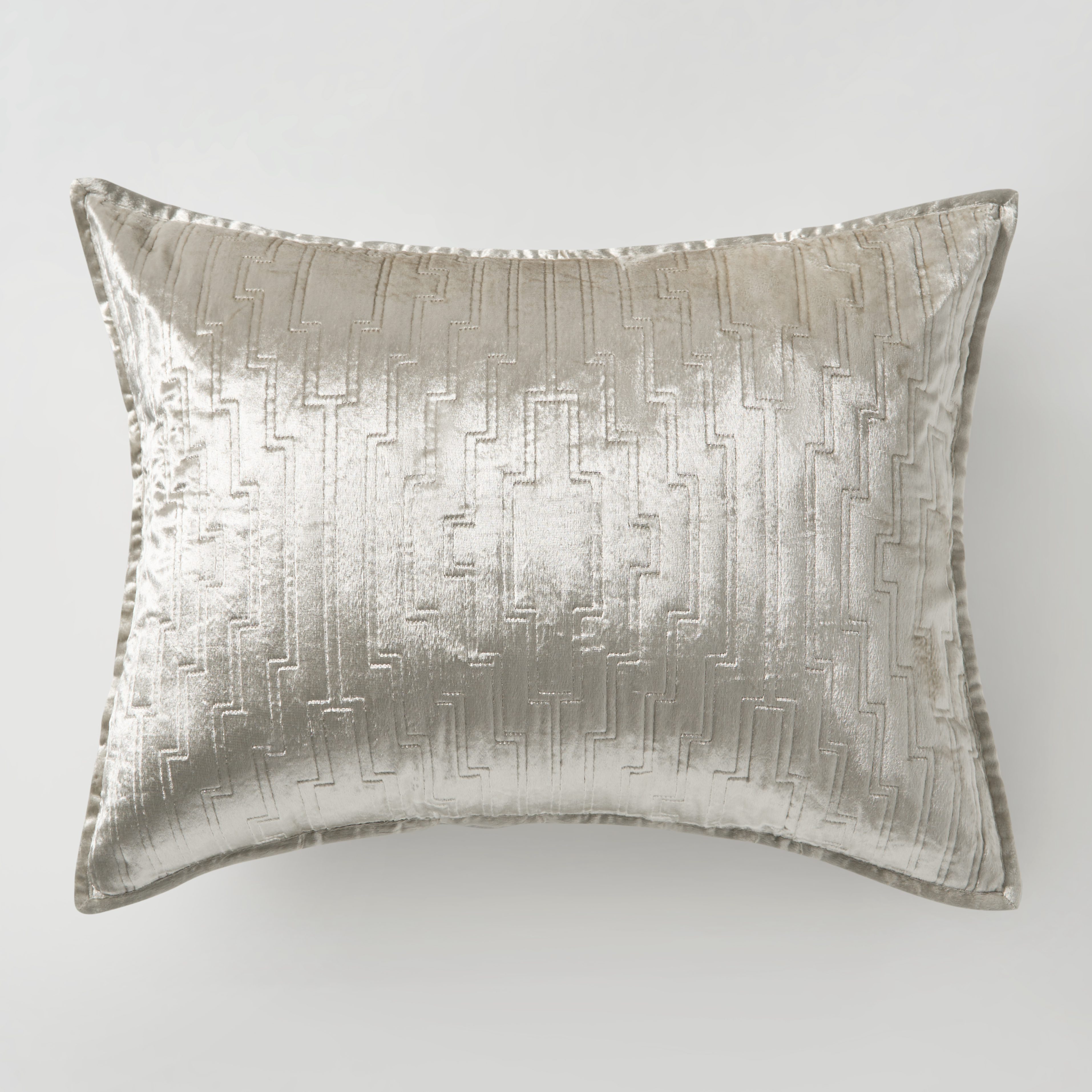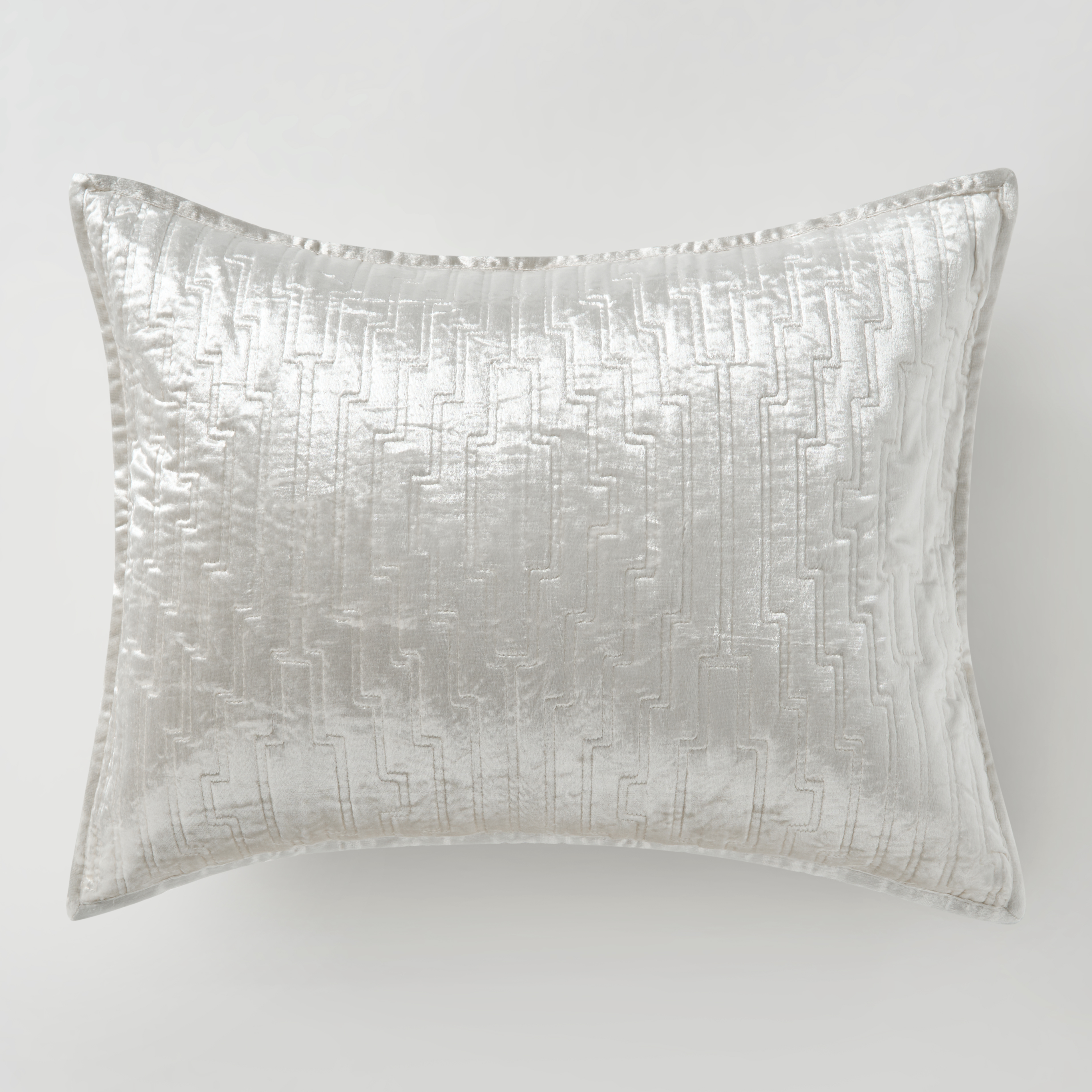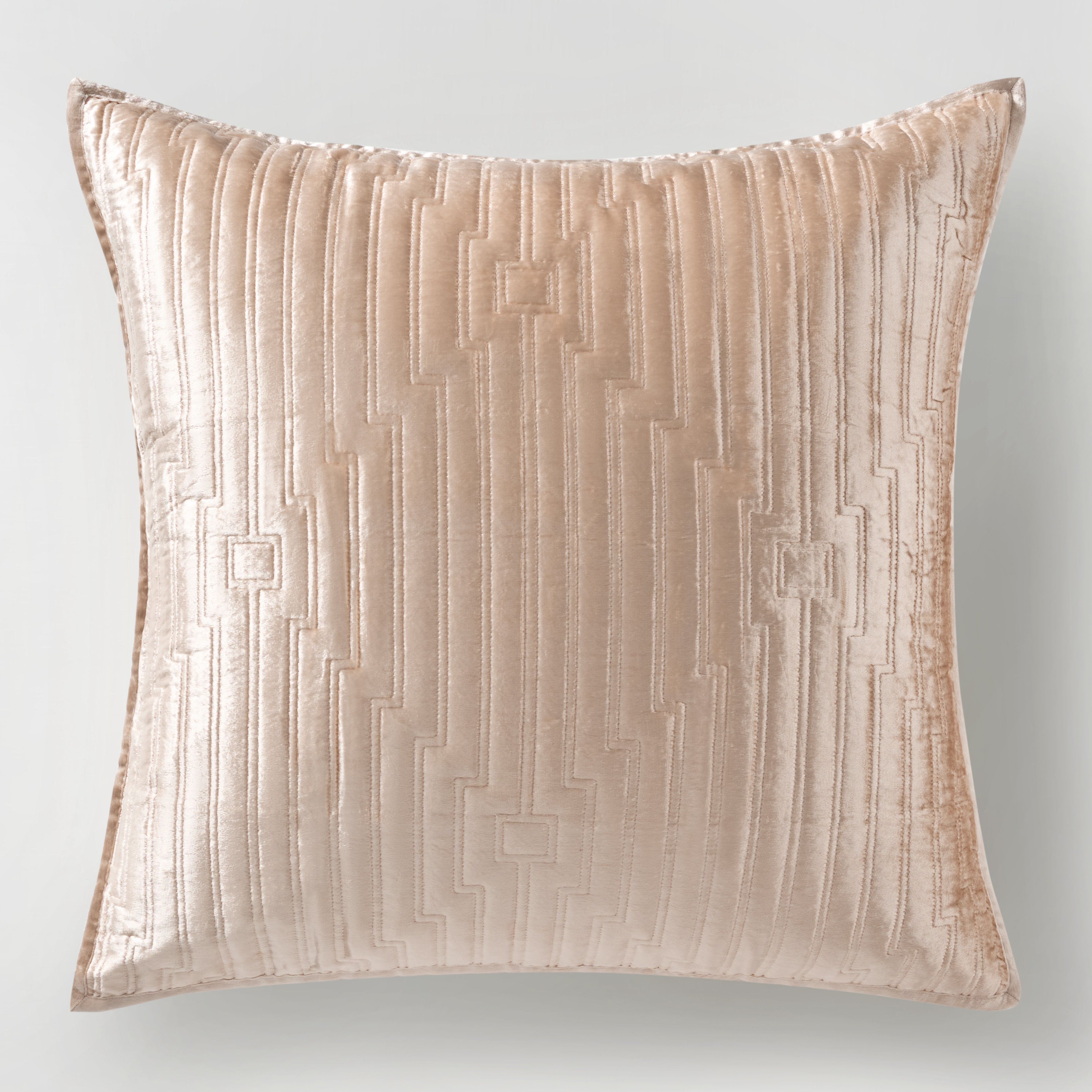 Transform your bedroom into a haven of luxury with the Glam Quilted Velvet Bedding Collection. We've elevated the standard quilt with a lustrous velvet detailed with modern quilted stitching and refined piped edges. Available in three stunning colors, each piece adds a touch of sophistication to your space. Create the ultimate cozy retreat and indulge in the comfort and style you deserve.Z Gallerie ExclusiveDETAILS AND DIMENSIONSFront: 100% Shiny viscose velvet, blushBack: 100% Cotton100% Polyester filingMachine quilted in geometric pattern with piped edgesShams have envelope closure (insert not included)Queen Quilt: 90"W x 94"LDual King Quilt: 104"W x 94"LStandard Sham Cover: 20" x 26" (sold indivdually)King Sham Cover: 20" x 36" (sold indivdually)Euro Sham Cover: 26" x 26"(sold indivdually)Sold separatelyImportedOTHER INFOMachine Wash Cold Gental CycleDo not BleachTumble dry Low, Irom from Reverse