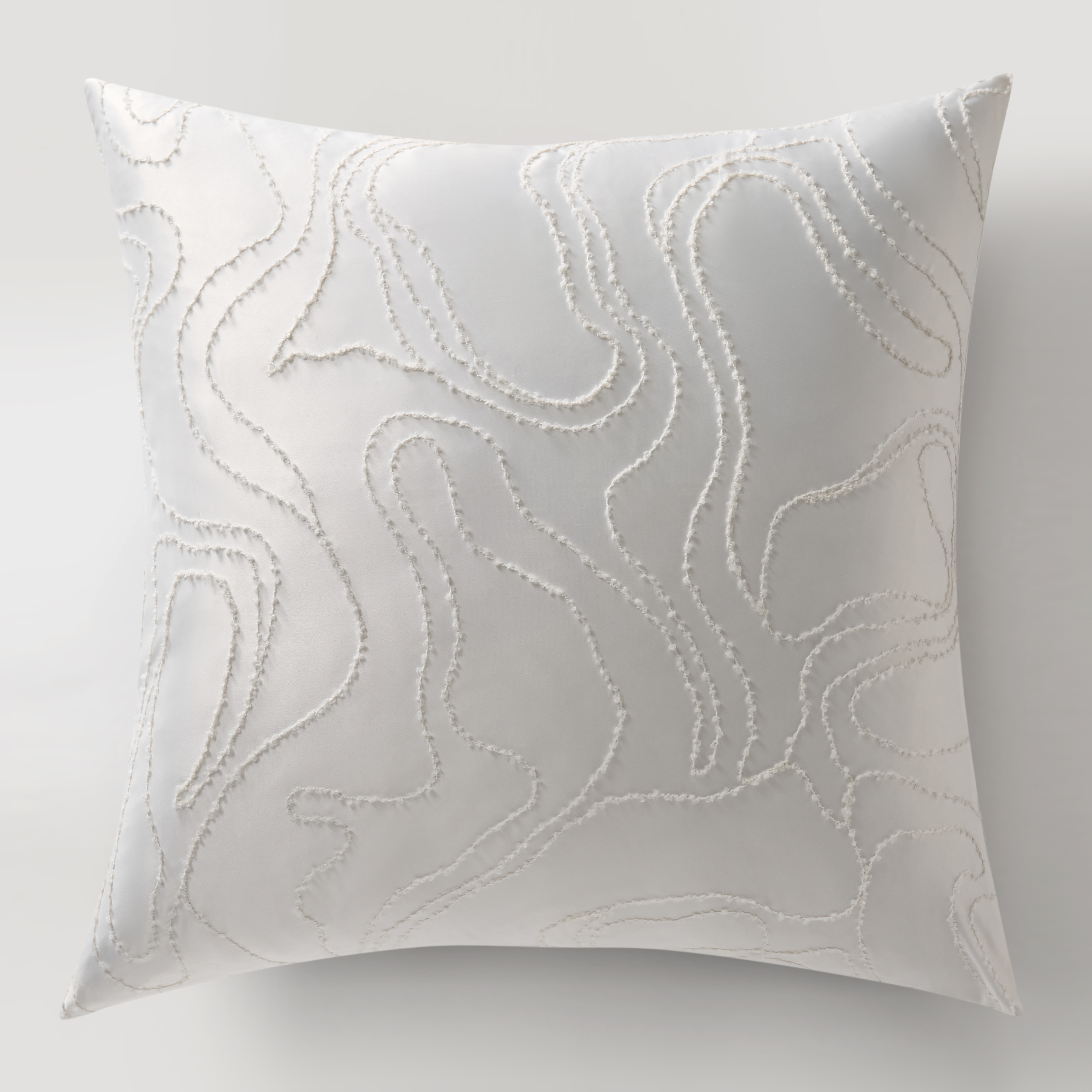 Elevate your bedroom with the understated elegance of our Noa Bedding Collection. Masterfully crafted with an embroidered swirl pattern on luminous pearl satin, this collection epitomizes sophisticated simplicity. The textural interplay of smooth satin and delicate embroidery creates a subtle yet luxurious dimensional effect that catches light beautifully, transforming your bedroom into a serene retreat. Z Gallerie ExclusiveDETAILS AND DIMENSIONSFront/Back: 100% PolyesterSatin embroidered swirl pattern - PearlKnife edgeQueen Set: Duvet cover: 92"W x 96"D + 2 Standard sham covers: 20” x 26"King Set: Duvet cover: 106"W x 96"D + 2 King sham covers: 20” x 36"Euro sham cover - Set of 2: 26" x 26"Duvet button closure, shams envelope closureEuro Sham hidden zipper closureImportedOTHER INFOCold Machine WashGentle CycleDo Not BleachDo Not Tumble Dry